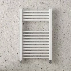 The 800mm high heated towel rail is an excellent addition to the Arezzo towel rail range, features a classic timeless design. Manufactured from durable steel with a modern eye-catching matt black finish, this stylish round bar towel rail provides superb heat output which will gently warm towels and your bathroom or cloakroom.