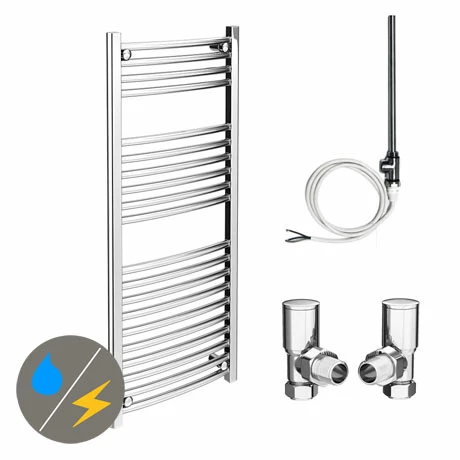 The Diamond 500 x 1200mm Curved profile towel rail is finished in chrome and features 20 horizontal 22mm diameter tubes. Designed to be plumbed into the main central heating system and used as a radiator/towel rail. It also can be wired into the electric mains for summer towel warming.