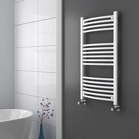 A quality 22mm tube diameter standard towel rail with a curved profile, finished in a classic brilliant ice white this luxury stylish towel rail brings a real quality finish to your bathroom. Comes with a 5 year guarantee against manufacturing defects.
