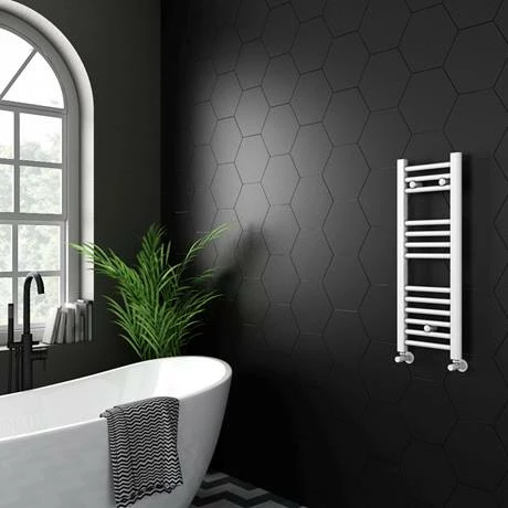 A quality modern 22mm tube diameter standard towel rail with a straight profile, finished in a classic brilliant ice white this luxury stylish towel rail brings a real quality finish to your bathroom. Comes with a 5 year guarantee against manufacturing defects.