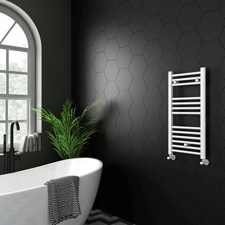 A quality modern 22mm tube diameter standard towel rail with a straight profile, finished in a classic brilliant ice white this luxury stylish towel rail brings a real quality finish to your bathroom. Comes with a 5 year guarantee against manufacturing defects.