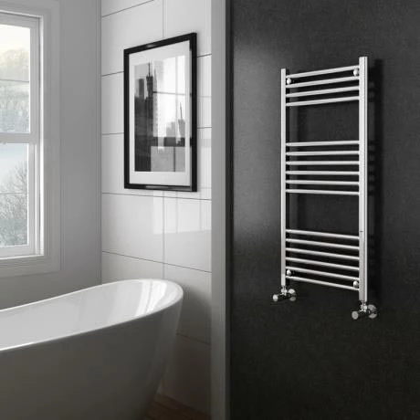 Dry towels efficiently and keep your bathroom warm with this smart Diamond Heated Towel Rail. Finished in highly polished chrome, this 500mm wide ladder towel radiator brings a luxurious sparkle to your bathroom or en suite. The superior quality rail will fit comfortably against the wall thanks to its straight profile – an effective solution for smaller spaces. Expertly crafted from durable steel, this modern chrome ladder radiator is made to last. It even comes with a handy fixing kit for stress free installation.