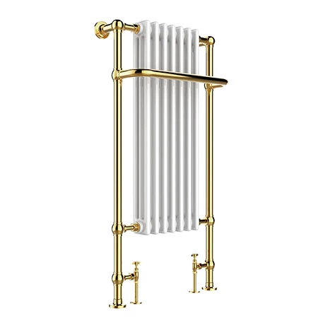 The JTP Grosvenor Heated Towel Radiator will create a period inspired look to your bathroom. This elegant radiator features an antique brass frame that’s fixed together with classic ball joints. The middle section is a mini cast iron style radiator with a smart white gloss finish. The Grosvenor Heated Towel Radiator makes a classic statement that’s a great fit for traditional themed bathrooms.