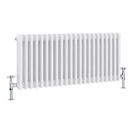 This Keswick Cast Iron Style Radiator brings time honoured elegance to your home. Its classic shape gives it a vintage inspired look, while the fresh white gloss finish adds a clean modern twist. This 1010mm wide traditional column radiator is crafted from hardwearing steel that provides a high heat output, ensuring your space is kept toasty. The radiator comes with fixing kit for easy wall mounting. Looking for a statement finishing touch? Add the eye catching Keswick Anthracite Angled Radiator Valves as a contrast against this white horizontal radiator.