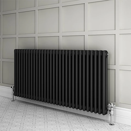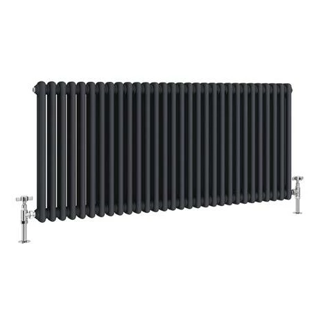 This 1355mm wide Keswick Cast Iron Style Radiator blends vintage style with contemporary heating technology. It has an impressive heat output thanks to its steel construction and double panels. The generous dimensions make this traditional column radiator an ideal size to keep medium to large sized rooms super cosy. In an anthracite matt grey finish, it blends modern materials with a classic period style. Team this anthracite horizontal radiator with the matching Keswick Anthracite Radiator Feet to achieve a pulled together look.
