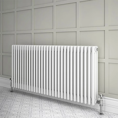 Get a period inspired look with this Keswick Cast Iron Style White Radiator. This 1355mm wide traditional column radiator evokes the iconic style and elegant lines of vintage cast iron radiators. It’s coated in high quality gloss paint and is made from durable steel that maximises its heat output. The white horizontal radiator is a great size for small to mid sized rooms and hallways. Thanks to its curvy top, it’s also a perfect shape for warming your beanies and gloves before you head outdoors.