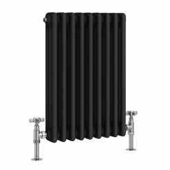 If it’s chic bathroom heating you’re after, why not try the Keswick Cast Iron Style Anthracite Radiator? With its high quality matt powder finish, this 425mm wide anthracite vertical radiator will bring a classic feel to your bathroom. It’ll look especially striking with a colourful towel draped over the top, all ready and warm for when you’re done in the shower. This traditional column radiator comes complete with a fixing kit for easy wall mounting. Team it with the Keswick Chrome Angled Traditional Radiator Valves for a contrasting silver and black effect.