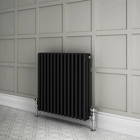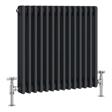 This Keswick Cast Iron Style Traditional Anthracite Radiator is a bold feature piece that boasts a striking matt anthracite finish. At just 650mm wide it has a substantial surface area that means it warms your room effectively. Crafted from durable steel, this traditional column radiator heats quickly and stays warmer for longer, saving you money on your heating bill. You can also use this anthracite horizontal radiator to save space by mounting it directly onto the wall to keep the floor area clear. Why not pair it with anthracite radiator valves for a consistent aesthetic?