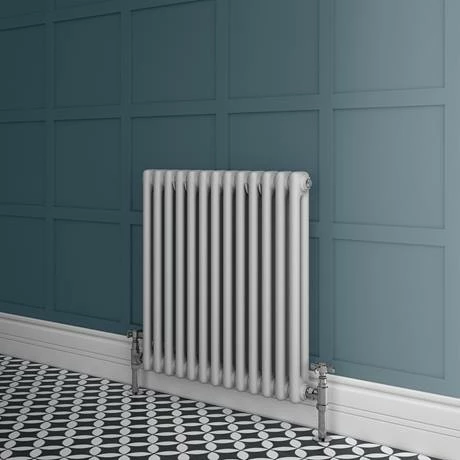 The Keswick 600 x 592 cast iron style 2 column radiator, a beautiful period style traditional horizontal radiator combining classic style with high heat output. Features a stylish cool grey powder coating with a great matt finish, perfect for adding a touch of class into any room. All radiators come complete with fixing kits for wall mounting.