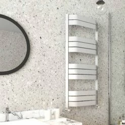 The Milan 490 x 1200mm heated towel rail is finished in chrome and features 12 horizontal rails. Designed to be plumbed into the main central heating system and used as a radiator/towel rail. It also can be wired into the electric mains for summer towel warming.
