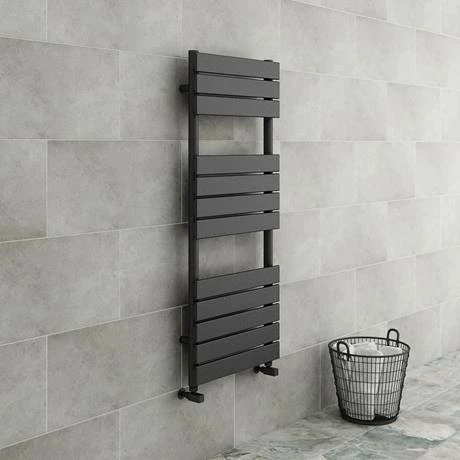 Heat your bathroom and warm up your towels with this contemporary Milan Heated Towel Rail. The horizontal flat tubes of this designer towel rail radiator will add instant charm to your bathroom, with a striking anthracite powder coated finish that makes an interesting contrast against gloss white furnishings. At 490mm wide this modern towel rail is suitable for smaller en suites as well as bathrooms. It’s manufactured from durable steel so you can be confident it’s here to stay. The slimline profile means it tucks neatly against the wall and doesn’t take up too much of your precious space.
