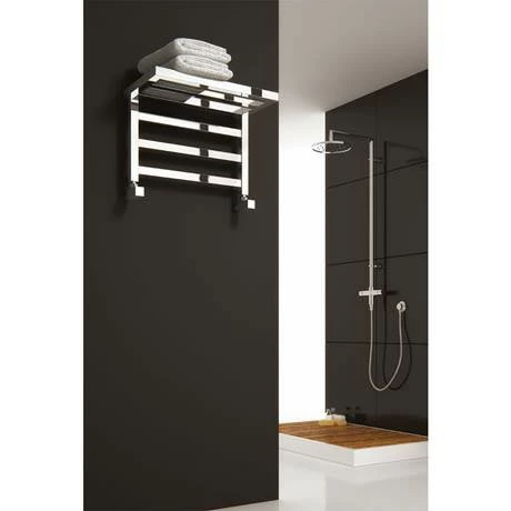 Versatile and stylish, the Elvina designer radiator features a square bar design and a shelf which is ideal for warming up towels. Constructed from mild steel and beautifully finished in chrome. Reina back this attractive radiator with a 5 year guarantee.