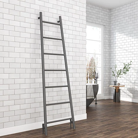 The Venice Anthracite Leaning Ladder Heated Towel Rail is a stylish and functional addition for the modern bathroom. Measuring 1800mm high, it has enough bars to keep your towels warm and dry. This Venice Leaning Ladder Heated Towel Rail is manufactured from high quality materials and features a contemporary anthracite finish. Designed for use with with central heating systems.